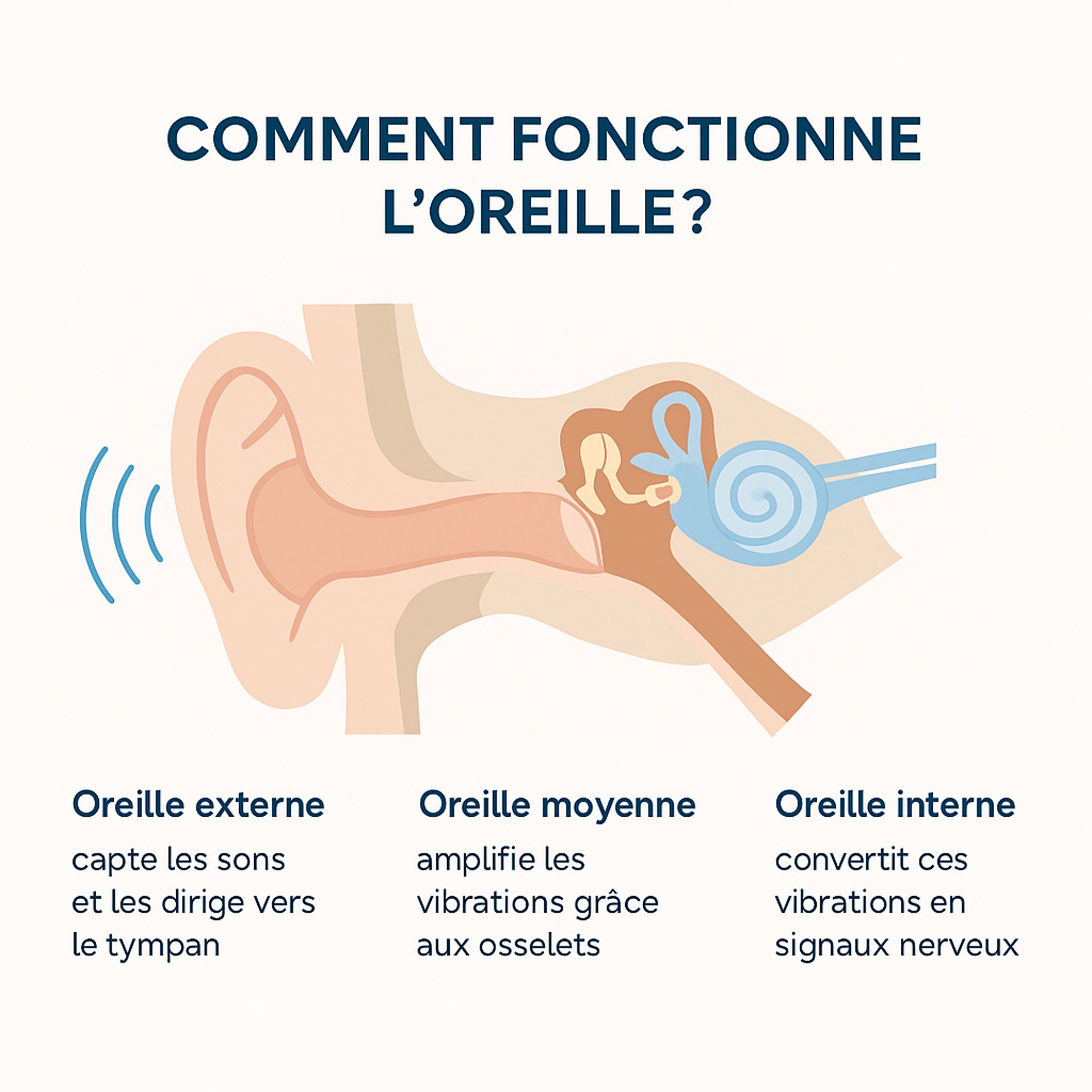 Chaque étape joue un rôle essentiel : si l’une d’elles est perturbée, l’audition peut être altérée.