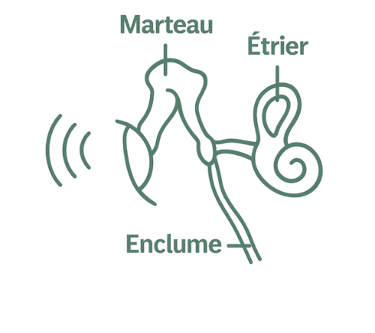 où les vibrations sont amplifiées par trois petits os : le marteau, l’enclume et l’étrier.